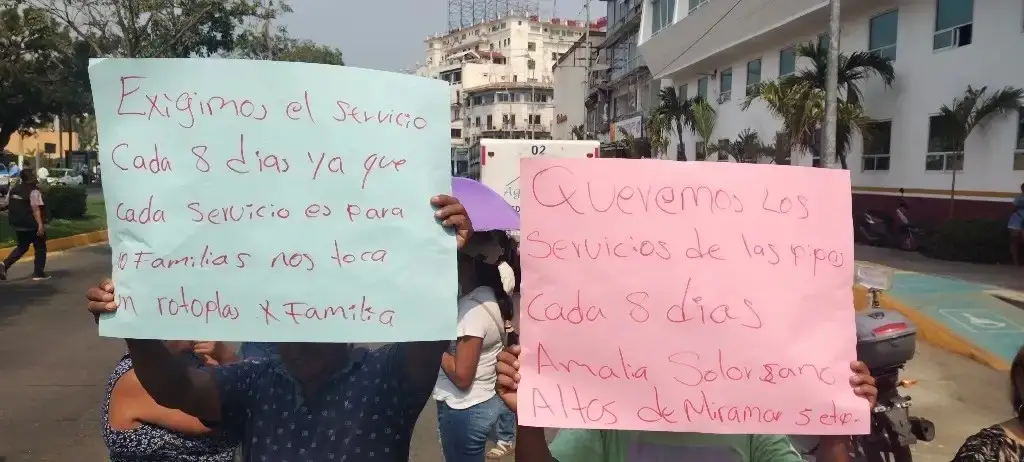 Protesters criticized that the Drinking Water and Sewer Commission of the Municipality of Acapulco supplies them with water through pipes, at the rate of one Rotoplas water tank every month and a half, which is insufficient, if the extreme temperatures that are also taken into account are taken into account. They affect Acapulco and the country.