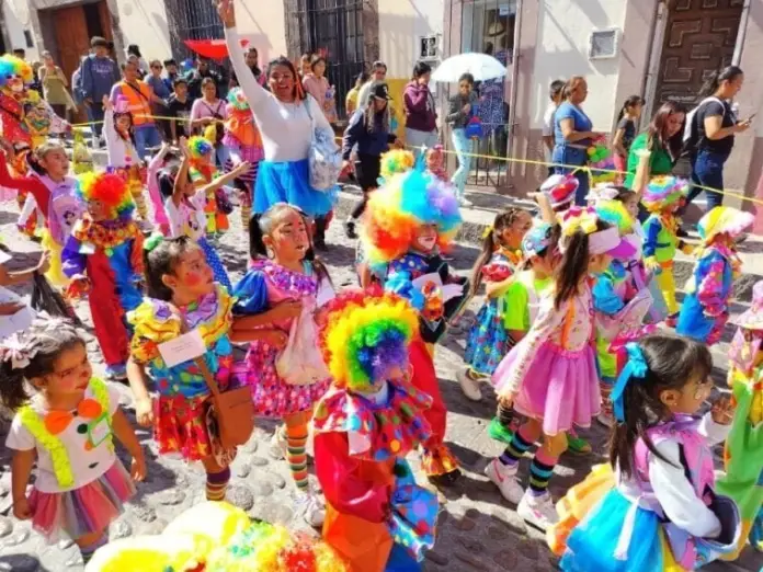 In San Miguel de Allende, the festive atmosphere is already felt before the Sunday of the Convite de Locos. With the objective of encouraging the participation of the little ones in the local traditions on June 13, the day of San Antonio de Padua, the Loquitos parade was held, in which the little students of the municipality’s kindergartens participated.