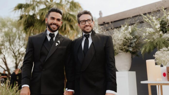 Miami-based couple Carlos Adyan and Carlos Quintanilla lead busy professional lives. Adyan hosts the NBCUniversal Telemundo show “En Casa Con Telemundo” and co-owns the restaurant A Fuego Lento, while Quintanilla serves as the vice president of original content for Sony Pictures Television. With their high-profile jobs and a combined Instagram following of nearly 700,000, the couple sought a destination wedding to escape their daily routines and immerse themselves in a nuptial mindset.
