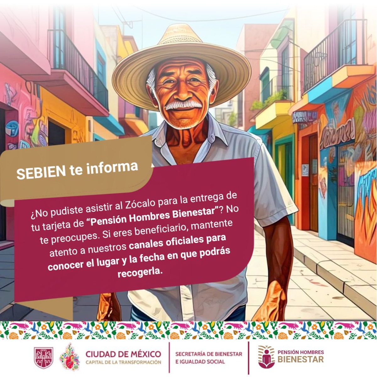The Secretariat of Welfare and Social Equality of Mexico City notified that, if you were accepted as a beneficiary of the Pensión Hombres del Bienestar, you should pay attention to the local agency’s official channels.