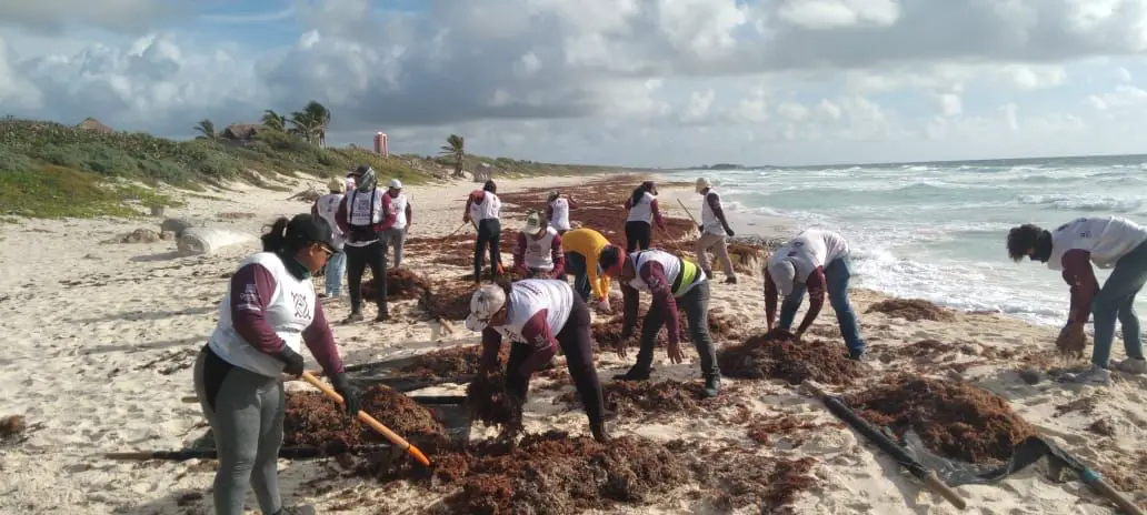 A team of 51 personnel from Zofemat and Temporary Employment Program participants work together to mitigate the impact of sargassum, manually collecting it from Monday to Saturday between 7:00 a.m. and 2:00 p.m. This approach avoids using heavy machinery, which could harm the coastal environment.