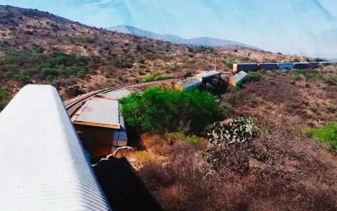 A train carrying vehicles derailed on the morning of Sunday, April 6, in the mountainous area of the municipalities of Tecozautla and Tequisquiapan, in Hidalgo and Querétaro, respectively.
