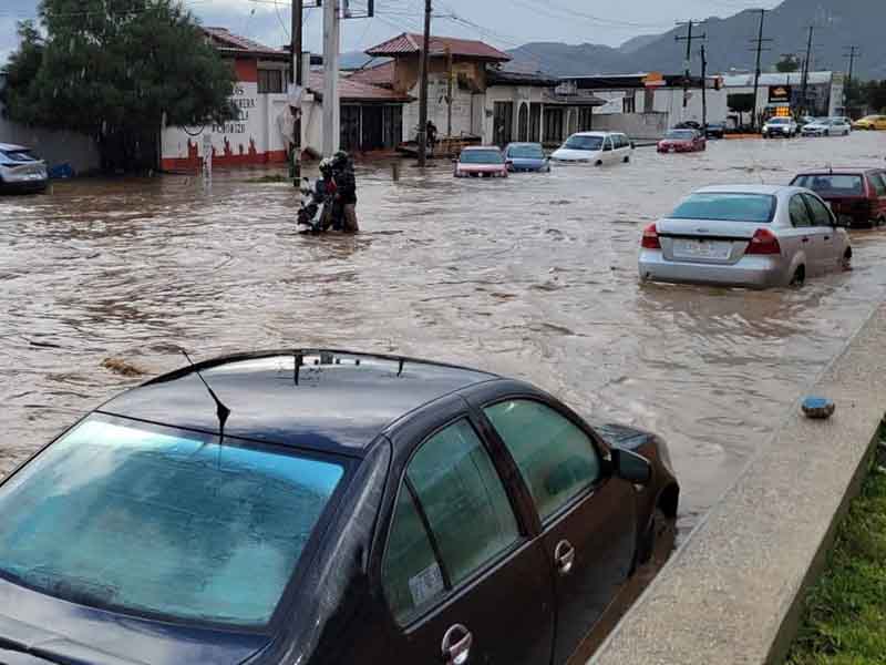 Heavy rain hit the city of San Cristóbal de Las Casas on Monday afternoon, leaving flooded streets in several neighborhoods and damaging roadways.