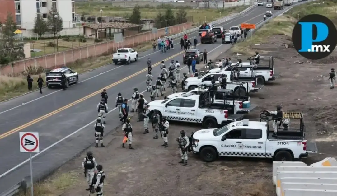 The conflict resulted in a burned pickup truck, vandalized work machinery, and roadblocks on the highway. / Social Media Members of the National Guard, Navy, State Police, and Coronango Municipal Police are participating in the operation, securing the area to prevent further incidents. Civil Protection personnel also responded to the fire in the damaged vehicle.