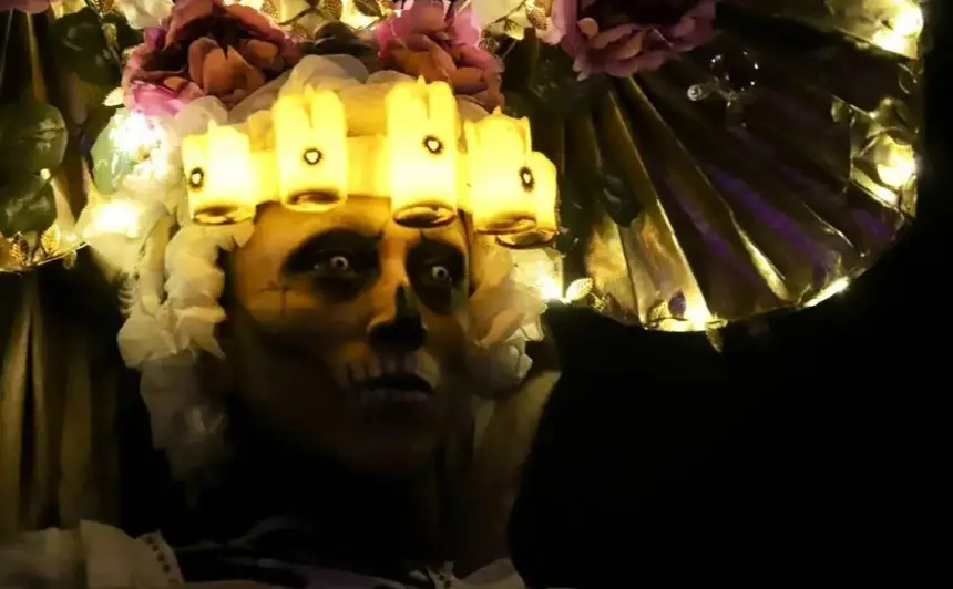 Another highly anticipated moment is the parade of skulls, accompanied by the traditional Catrinas, creating a spectacle full of life and color.