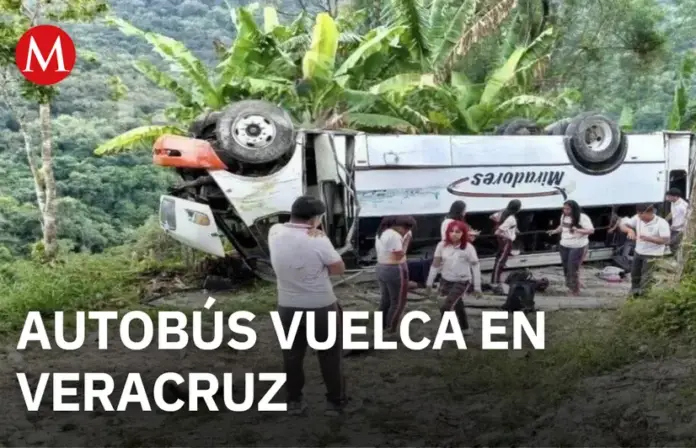 A passenger bus carrying at least 30 students overturned in the municipality of Emiliano Zapata, Veracruz, leaving 20 injured and three dead, including two young people and an elderly woman.