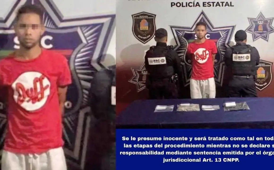 During a patrol, officers from the Secretariat of Citizen Security arrested an individual in the Paseos del Mar area of Cancún. The intervention occurred after officers observed a man handling small bags containing substances that, upon inspection, turned out to be marijuana and a white powder resembling cocaine. The individual, a Venezuelan national, was also carrying a backpack containing several portions of drugs and a cell phone, items which were seized for further analysis.