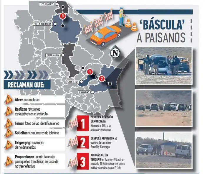 Valenciano stated that the checkpoint that the residents of Delicias reported was originally located at kilometer 175, near Bachimba, on Federal Highway 45; However, he stated that after the public complaint, they moved the checkpoint to the Saucillocamargo highway.