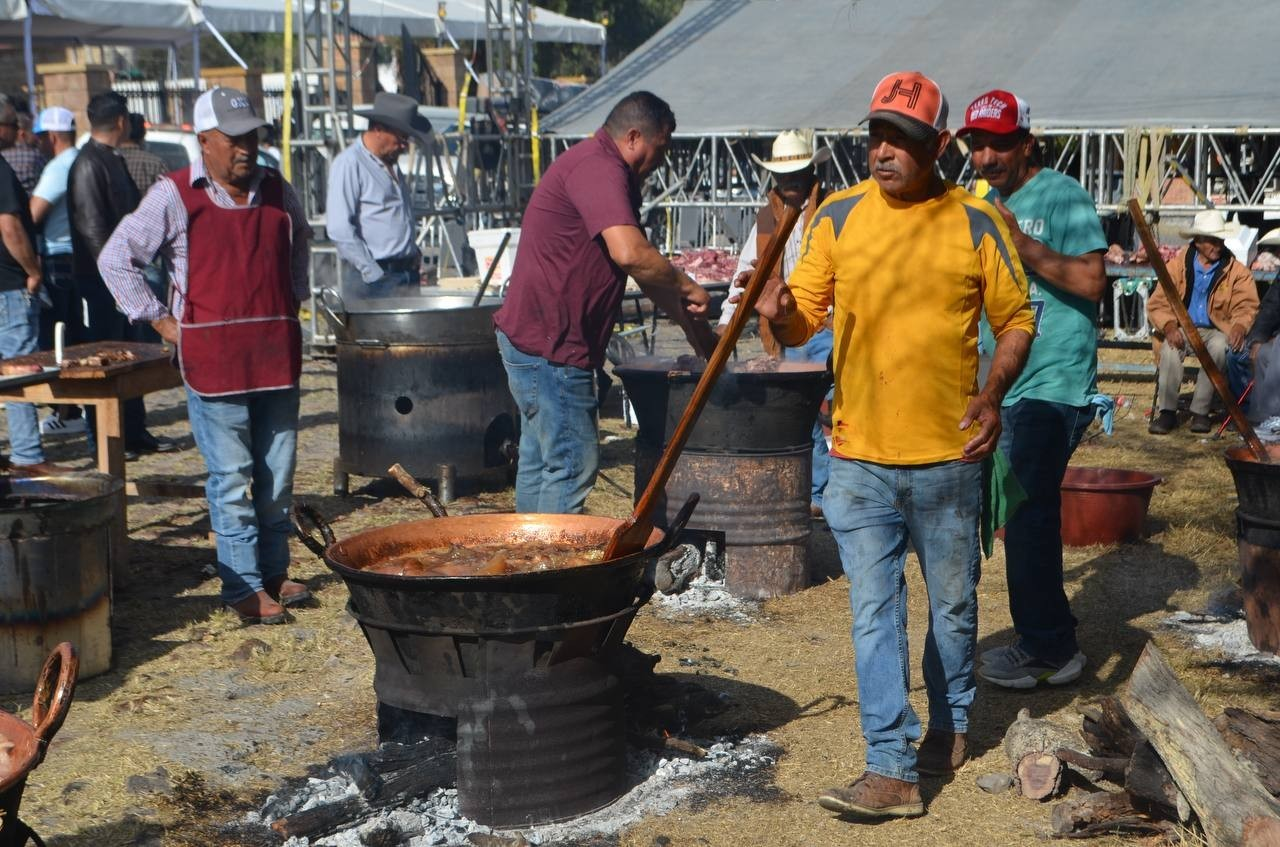 The church atrium was transformed into a huge event hall to accommodate some 1,500 guests. The entire community and residents from other rural areas gather here for the celebration. The menu includes rice with mole and chicken, charro beans, all cooked by the women of the community; there’s also carnitas that the men are preparing in five or six copper pots set up on the main street, almost directly across from the church and right where, at breakneck speed, a crew of workers is assembling a huge stage for the evening’s dance.