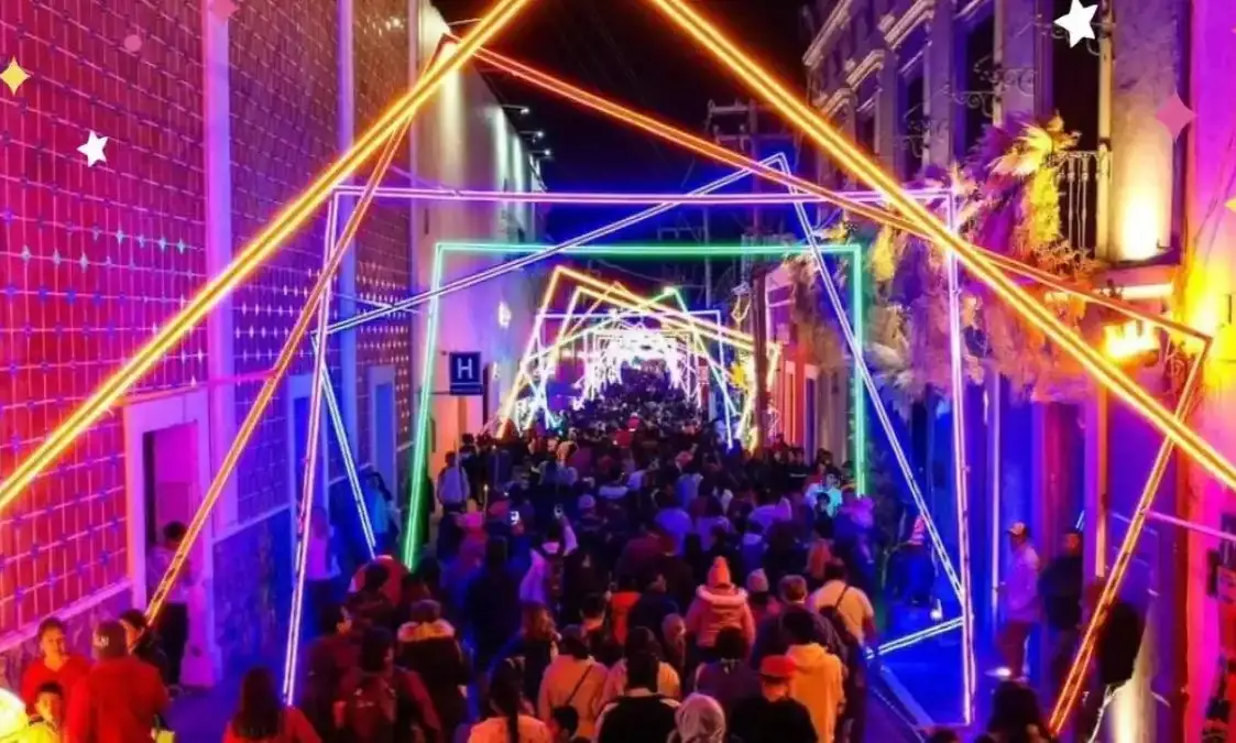 Without a doubt, another municipality where the lights add to the attraction is Zacatlán, where several streets are adorned with illuminated tunnels, decorative figures, and Christmas themes.