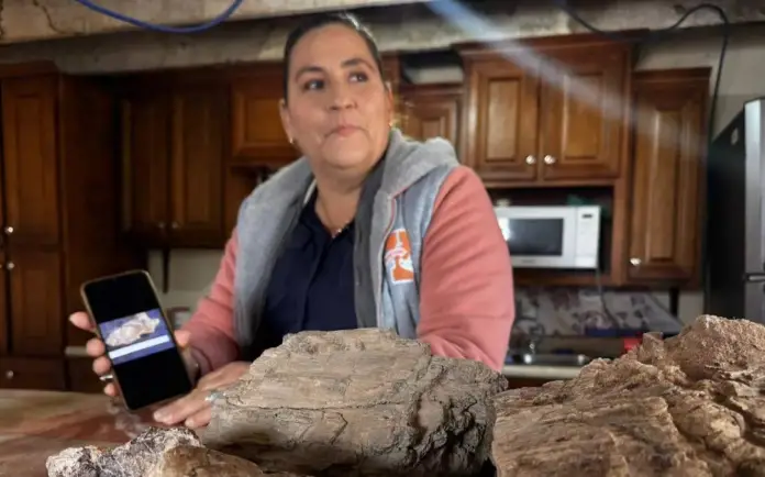 Guadalupe Hinojos, daughter of the man who found the fossil site, explained that it is located on the Los Arenales ranch, where bones that could be dinosaurs are still buried. She detailed that, after the search efforts, they have managed to extract hundreds of pieces, although many remain buried, waiting to be discovered. Among the pieces recovered are what appear to be reptile heads, parts of vertebrae, teeth, and a coprolite, which is being kept under extra security for fear that it might crumble or be lost.