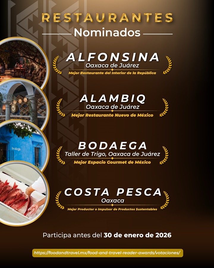 The Oaxaca Tourism Secretariat (Sectur Oaxaca) informs the public that voting to choose Puerto Escondido and Oaxaca as destinations of excellence in the 2025 Food and Travel Reader Awards closes on January 30.