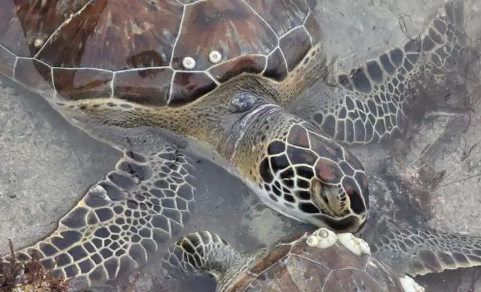 The Ministry of Environment and Natural Resources explains that, being cold-blooded animals, sea turtles come ashore to bask in the sun, seeking warmth.