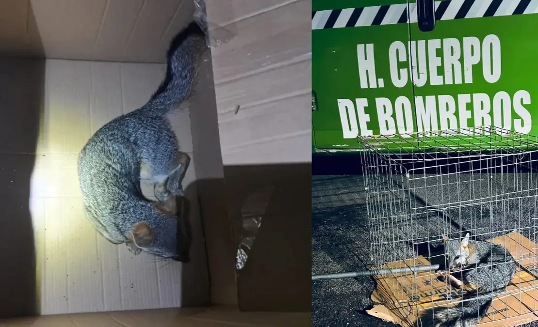 Personnel from the Civil Protection Directorate of Mineral de la Reforma rescued a gray fox that had entered a warehouse in the La Providencia subdivision.