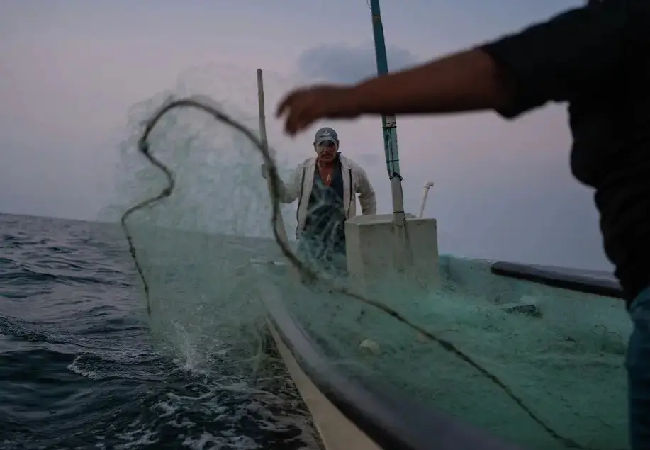 The sun has already set and a violet hue begins to tint the clouds when Mauricio Contreras and his daughter Eunices head out to fish in Los Arrecifes, in the southern Mexican state of Veracruz. Eunices is in charge of casting the heavy net into the water to catch snapper, pollock, or grouper while her father steers the small boat through the Gulf of Mexico.