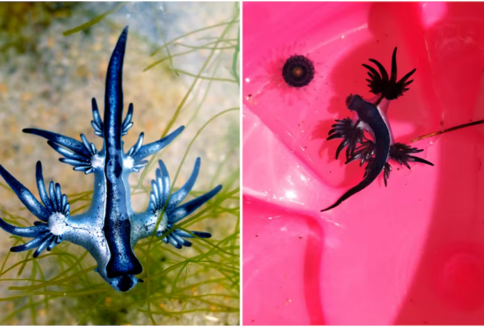 According to National Geographic, the blue dragon, scientifically known as Glaucus atlanticus, is a small sea slug that can reach between 3 and 4 centimeters in length. Its elongated body is characterized by an intense metallic blue color with a silvery sheen, allowing it to camouflage itself from predators.