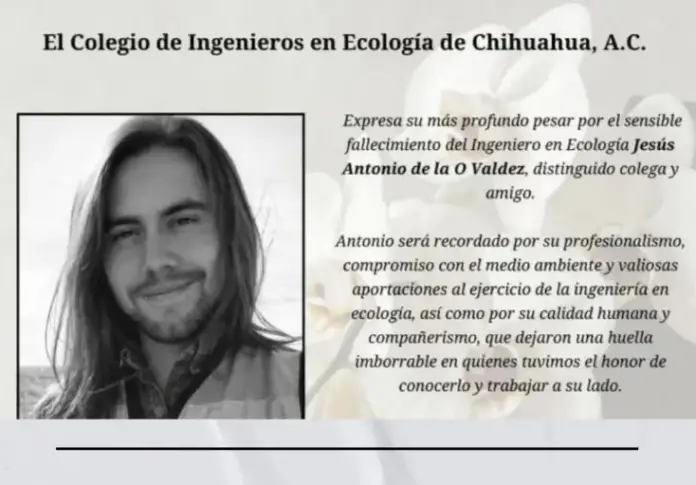 The College of Ecology Engineers of the State of Chihuahua expressed its condolences to the family and loved ones of De la O Valdez, who was one of the 10 workers from the Vizsla Silver Corp. mining company who were kidnapped by an armed group in the municipality of Concordia.