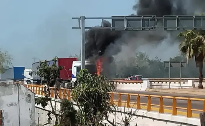 The municipality of Villa Unión, Mazatlán, reported at least one roadblock this afternoon on the main access road to the town, after a semi-trailer truck was set on fire and used to block the road, preventing vehicular traffic.