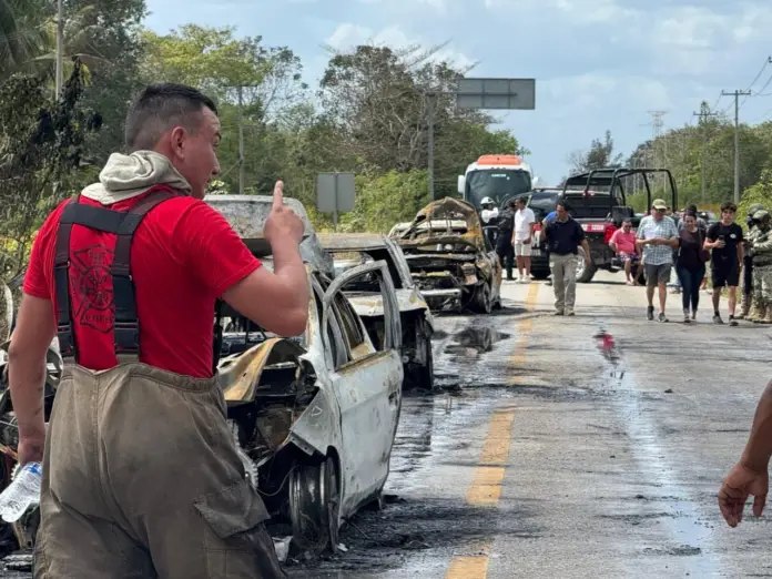 At least three vehicles were set on fire by armed individuals on the Cancún-Mérida bypass, heading towards the Leona Vicario area in the municipality of Puerto Morelos. The vehicles were rendered unusable. No injuries or fatalities were reported.