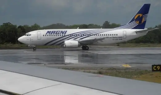 A Boeing 737 Magni taxis on a runway at Cancún Airport in Quintana Roo state, Mexico, on May 26, 2019. (AFP)