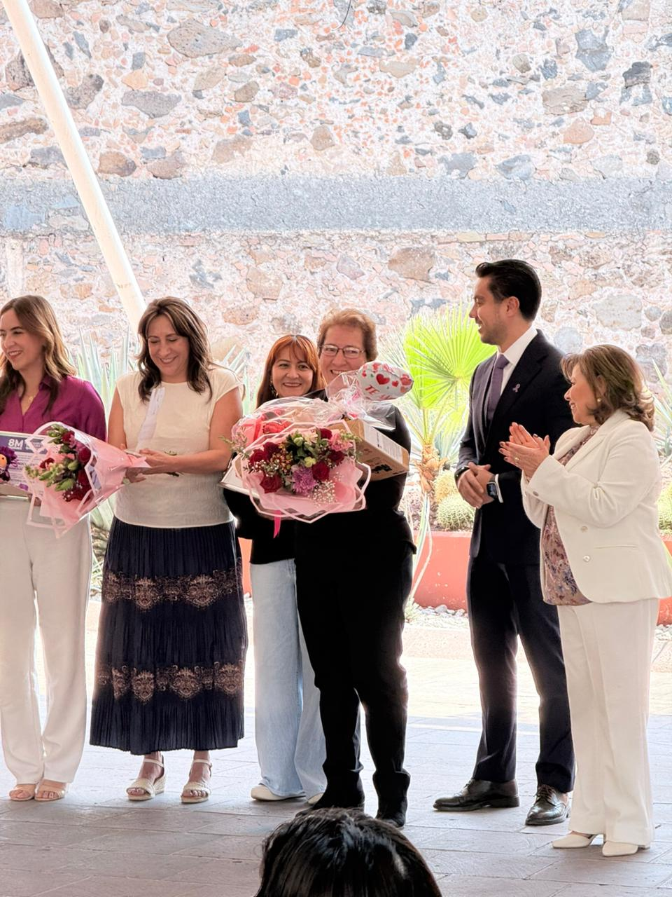 “They are the ones who, throughout their careers, their lives, their daily work, are making this land great, are making Querétaro great, a place that fills us with pride every day to be from Querétaro. Because that pride we feel in belonging to Querétaro isn’t given to us by the government, a political party, or politics; it comes from its people, from decades of generations of brave women and men, but above all, women who have won their rights through sacrifice, effort, and, quite literally, struggle.”