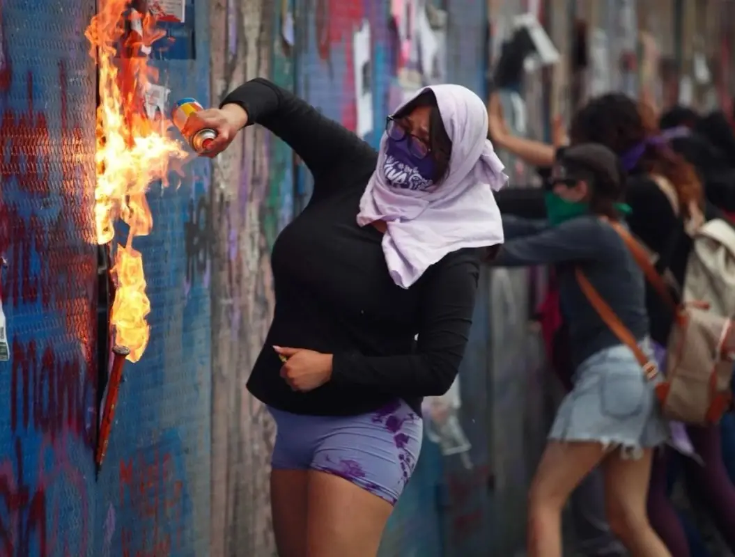 The Secretariat of Citizen Security reported that during the International Women’s Day march on Avenida Juárez, a group of hooded protesters was detected attempting to damage businesses. They were followed to 5 de Mayo Street, where, after being contained by police and taken to a safe area, several objects that could be used as weapons were confiscated.