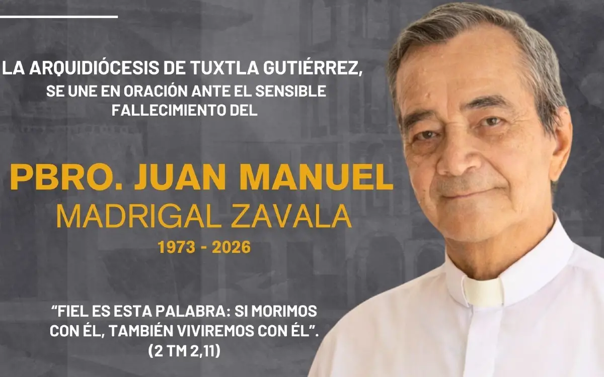 Mexican priest Juan Manuel Zavala Madrigal was found dead this Monday in Chiapas, after being reported missing on Sunday, the Archdiocese of Tuxtla Gutiérrez, the state capital, reported.