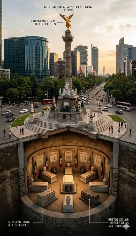 A space built within the monument’s base where several figures from the movement that gave birth to Mexico as a nation rest.